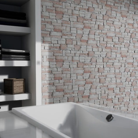 Textura y diseño: Uno de nuestros productos mas exitosos, que ofrece la imitación de listones o tiras de piedra en diferentes espesores, largos y profundidades. Los encuentros entre estos listones, se dan de forma natural y bien marcada, provocando sombras y juegos visuales muy interesantes. Aporta una calidez única para el revestimiento de todo tipo de muros, tanto interiores como exteriores.
